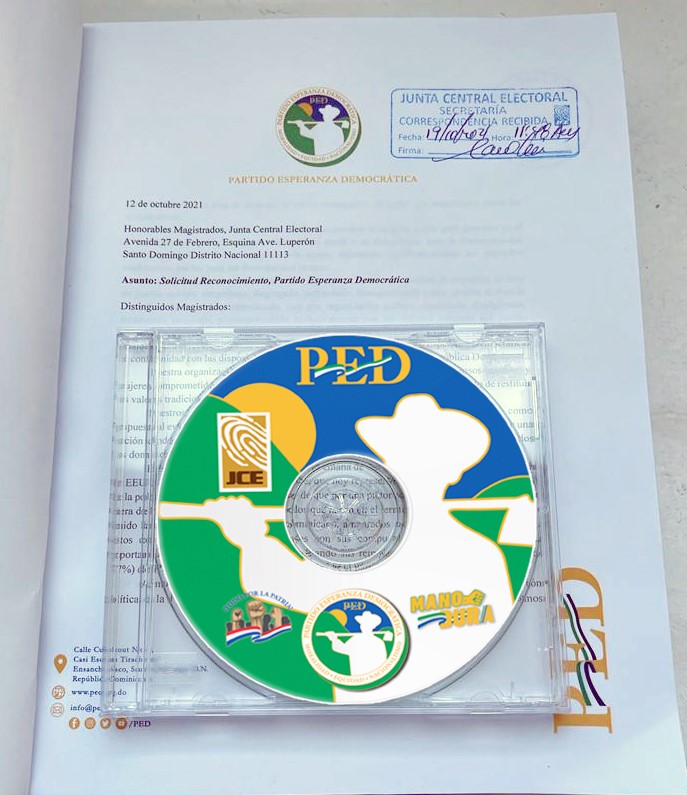 El Partido Esperanza Democrática que preside Ramfis Domínguez-Trujillo, presentó en el día de hoy, su solicitud ante la Junta Central Electoral para obtener su formal reconocimiento como agrupación política en la República Dominicana.